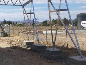 These footings are attached using four anchor bolts (we recommend Hilti anchor bolts). The concrete is drilled and cleaned, and then anchor bolts and the base plates are set in position. From there, the bolts are epoxied and set (we recommend Hilti epoxy), and the bolts are secured to the base plate to hold your Post-Truss canopy firmly in place.